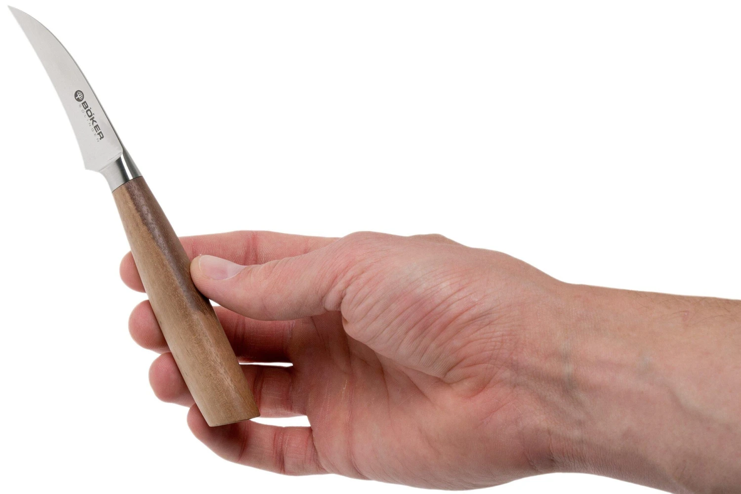 ¡El cuchillo curvo Core de Böker de 6,5 cm es la definición de menos es más! La hoja y el filo están curvados para que pelar y cortar, por ejemplo, manzanas o patatas sea un juego de niños. La hoja tiene 6,5 cm de longitud y, por tanto, es perfecta para las tareas de corte y pelado más pequeñas en la cocina.