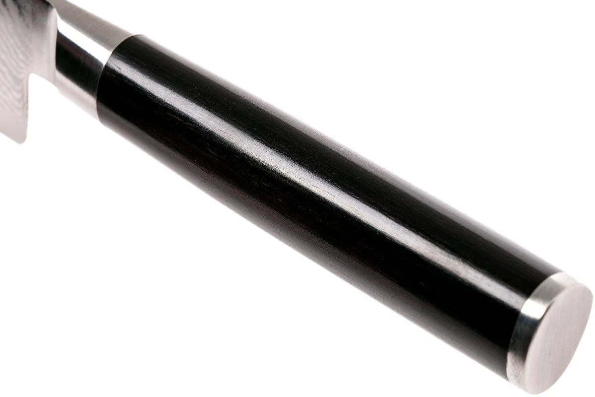 La colección Shun Classic está compuesta por preciosos cuchillos de cocina con acero de damasco de 32 capas. El núcleo VG-MAX se encarga de ofrecer unas propiedades de corte inigualables. Los mangos están hechos de madera de pakka laminada y tienen una forma asimétrica. Esta colección de cuchillos es una de las más extensas del mundo. Por su aspecto y por sus excelentes propiedades de corte, este cuchillo es un placer absoluto para la vista e increíble de usar.